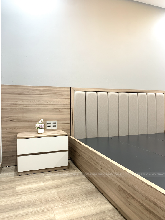 – 01 phòng ngủ Master (chất liệu gỗ tự nhiên óc chó và gỗ công nghiệp An Cường)